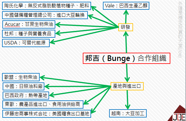 Joe整理了其中兩家的營業模式,這四大企業都是透過和多國企業與政府機關合作,整合各國或企業資源,然後逐漸取得糧食控制權與議價權,2008年以後,四大糧商有三個相同經營的重點,第一,必須先針對玉米下手,第二,南美洲和中國是必備的經營重點