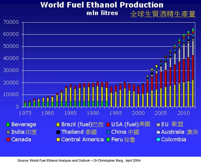 能源酒精的主要生產國,從2000年開始大幅增加,包含美國、巴西、歐盟等國是主要生產國