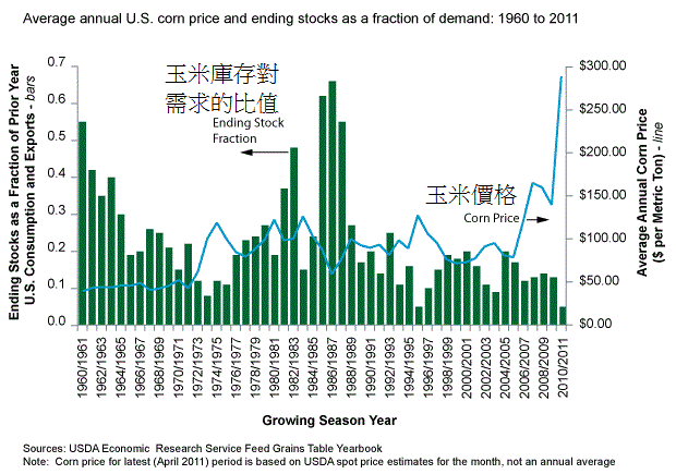 越來越多農人發現,只要玉米的庫存對需求比例太低,那麼玉米價格幾乎就會相對呈現上漲