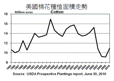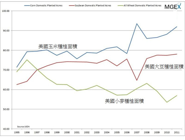 所以美國農夫們開始大幅增加玉米田的面積,但美國總耕地面積是有限的,這連帶的影響到大豆、小麥、棉花的種植面積,尤其是棉花和小麥,耕地面積大幅縮減