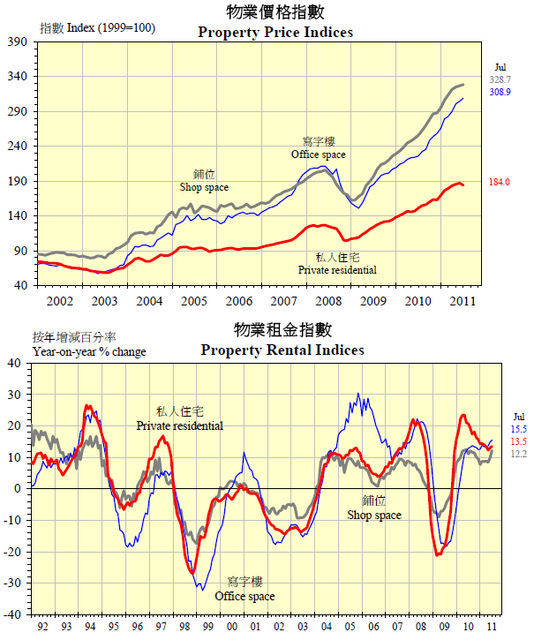 第三個問題是房地產,房地產炒作從1997年泡沫破裂之後,如今又再度看到房地產泡沫,三大房地產價格指數皆上漲和租金指數成長明顯縮小,這次的價格與租金落差程度規模恐怕不亞於1997年的情況,上述三個問題點,前兩點的問題起源來自國外,無法根除,但房地產問題在泡沫未爆發以前還來的及預防,否則2014年以前,只要中國的經濟有出現任何問題,香港的房地產泡沫有極高機率會再度出現