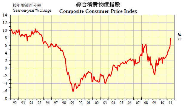 ,鄰近中國雖然有直接貿易的好處,但也吸收了中國的部分通貨膨脹,加上港幣和美元的連動,壓低了港幣匯率,進口物價提高和國際熱錢輸入的結果就是越來越高的通貨膨脹,甚至已經高過了2007金融海嘯的程度,香港人民體會到的通貨膨脹率越來越劇烈了