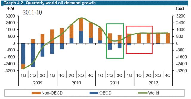 2011年10月,全球用油量Q2和Q3意外大幅減少OPEC預估2011年Q4用油需求會稍微反彈,2012年維持穩定