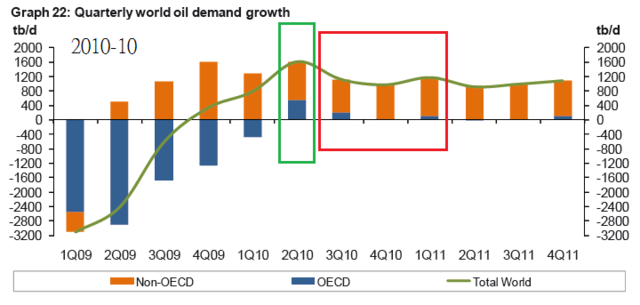 2010年10月OPEC預估Q3和Q4全球用油量需求成長會減緩
