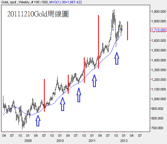 總體經濟研究者不會相信黃金碰到周線長均線反彈的機率極高,但事實就是如此,因為地球上大多數的高額交易都是來自於技術分析研究者,技術分析研究者也不會相信黃金後勢高機率還有更高的價格,獲利能先搶先贏,但總體經濟來看,黃金在特定環境下確實可以越長越高,崩盤以前會逼近垂直線的上漲,事實也是如此