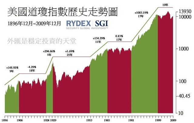 有人知道每一段起漲(綠色部分)都是甚麼歷史財經背景嗎?