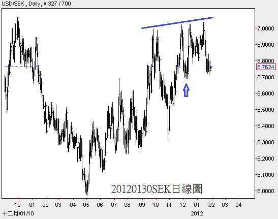 受制於EUR的弱勢和歐洲經濟問題,SEK走勢和瑞典經濟同步受到壓抑,Joe判斷Gold的投資效率會比SEK更理想,1月初建議分散轉出以後,近期再度出現適合轉出的波段,建議操作贖回TWD,資金轉入台銀,等待Gold出現短線回檔再承做USD計價的Gold