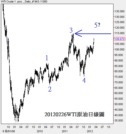 日線圖上WTI原油是非常堅固的型態 , WTI原油短線目標是US$115 , 第二季基本上是通貨膨脹較嚴重的情況