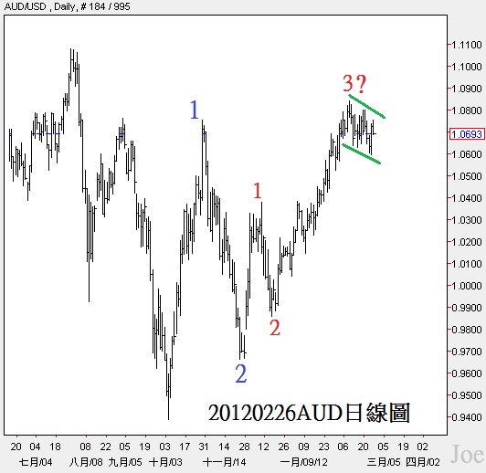 AUD依然非常強勢,但短線進入盤整的旗型,耐心等待盤整結果,暫時不適合再買進,但長線還會有更高價格,所以持有AUD暫時還是低風險的