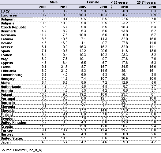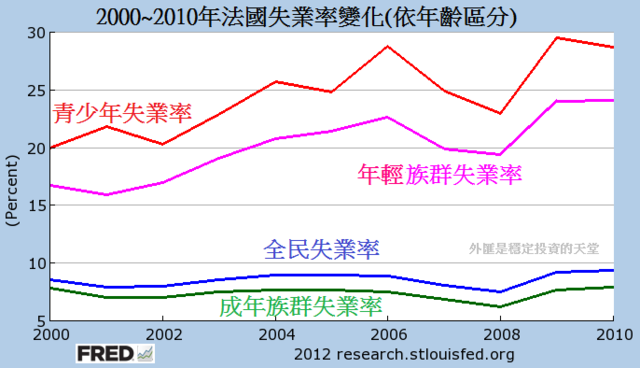 2008年進入衰退的歐洲各國來說,新生代更是明顯的弱勢,年輕族群失業率逐漸高於全民失業率