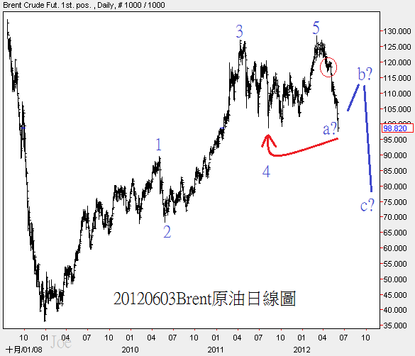 | 原油 | ![]() WTI原油還撐住,但Brent原油卻先崩盤了,6月1號出現了低於2011年8月最低價格的價位,雖然原油在紅色圈圈處企圖出現一個突破上漲的走勢,但最終仍然撐不住,形成快速的下跌走勢,這象徵著,未來原油恐怕只能夠用趨勢波來進行了,這象徵原物料數十年大多頭的終結,也意味著,具有人口紅利的新興國家和美國,未來股市仍然將逐漸轉為多頭格局 |