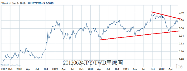 JPY對TWD升值暫時告一段落了,短線上有機會先回到NT$0.35X以後再開始升值,日幣實用需求的用戶可以等下個月考慮分批進場