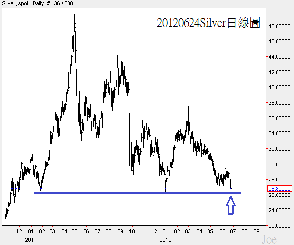 | 白銀 | ![]() 跌破藍線的話,白銀恐怕會形成長線的空頭走勢,目前投資白銀的風險已經太高,建議白銀投資人減持比例,或者配套其他投資商品,降低風險 |