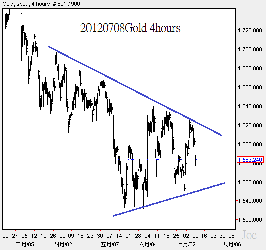 1. 短線上仍然在三角盤整,耐心等待US$1560左右的價位出現