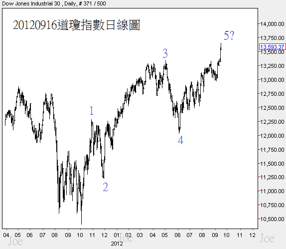 預期的藍色第五浪正式來臨,短線目標13750如果能順利突破且超過,那麼2013年下半年,美股依然有不錯的效益