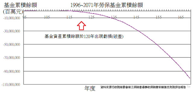 勞委會提報的政府逐年編列預算補助勞保基金財務缺口,以及「政府負完