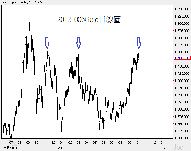 WTI原油的走勢和Brent原油截然不同,另Joe不禁認為,美國政府在眼下壓低WTI原油價格,當然,如果考量北美天然氣的產量,目前WTI原油的走勢暫時還算是合理的,但短線上作圖暫時失去了效益,除非WTI原油價格突破US$100,否則就等美國大選過後再分析WTI原油了