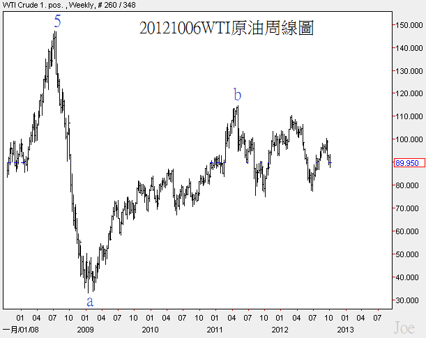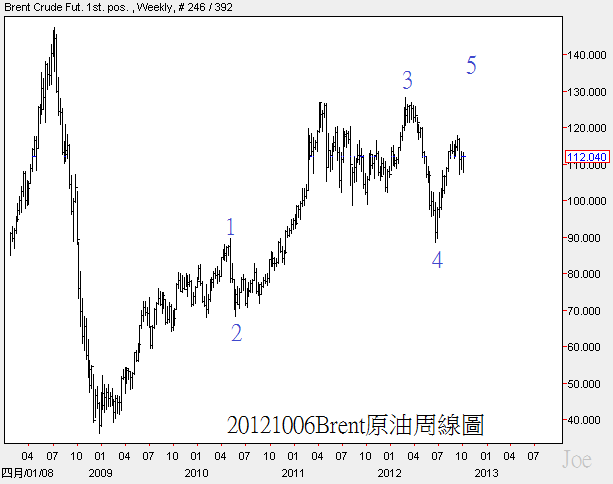 WTI原油的走勢和Brent原油截然不同,另Joe不禁認為,美國政府在眼下壓低WTI原油價格,當然,如果考量北美天然氣的產量,目前WTI原油的走勢暫時還算是合理的,但短線上作圖暫時失去了效益,除非WTI原油價格突破US$100,否則就等美國大選過後再分析WTI原油了