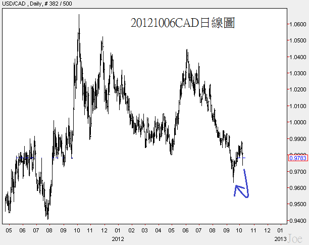 美國大選還有1個月,10月份理想的情況是突破藍色線,末期的CAD能走到哪裡,得視WTI原油能否穩定維持在US$90~100之間,這是最有利於CAD短線衝刺的價位