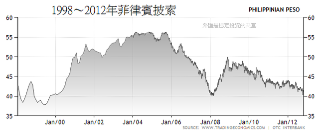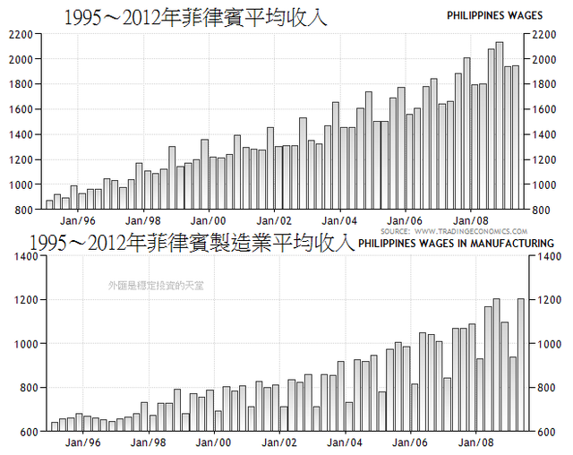 貨幣也逐漸升值,外國資金願意進駐菲律賓,投資菲律賓,加上菲律賓還有長達至少20年以上的人口紅利,菲律賓只要政治勿出現太大問題,或者國際經濟局勢出現不可抗的衰退影響,2015年以前,或者東亞衰退以後,菲律賓會是全球下一個製造業的熱門選擇