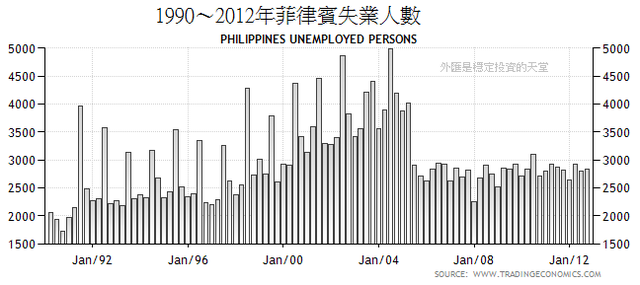 失業人口維持恆定,就算是美國次級房貸和歐債危機,菲律賓的失業人數依然控制的相對穩定