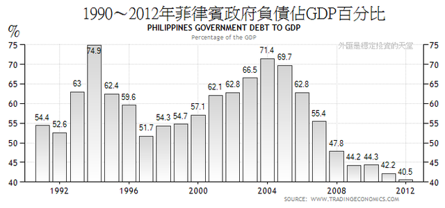 1997年亞洲金融風暴過後,菲律賓被國際炒家Soros弄得經濟大幅衰退,加上執政者貪腐,直到2004年,菲律賓經濟才開始出現明顯的改善,2004年開始,菲律賓GDP成長率開始明顯成長,即使是2009年美國次級房貸爆發,菲律賓依然維持正成長的GDP表現