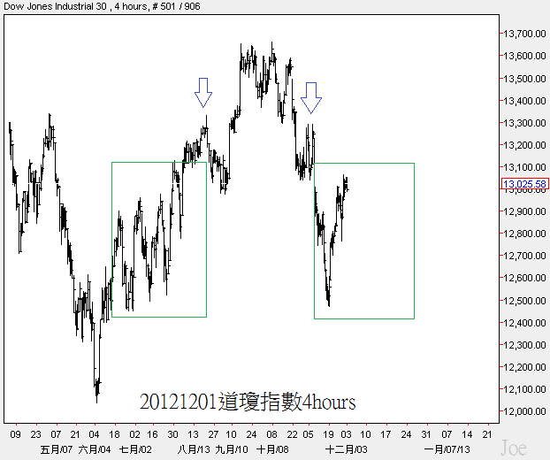 但是元旦過後就不同了,美國民間消費未必能再延續,但財政懸崖增稅約一個QE規模的利空幾乎閃不掉,Obama的決定就是增稅,就算共和黨不妥協,減稅時間到期談判破裂,屆時還是得增稅,反而較容易確認方向,12月27號、1月2號、1月9號,隨便挑一個日子,未必能確定是上漲或下跌,但是12月底~3月底,美股要走多頭就很拚了,這時候操作的把握度明顯是比較高的,但操作也是趨勢的前幾天和末幾天,接下來都是等待,投資大多時間都在等待