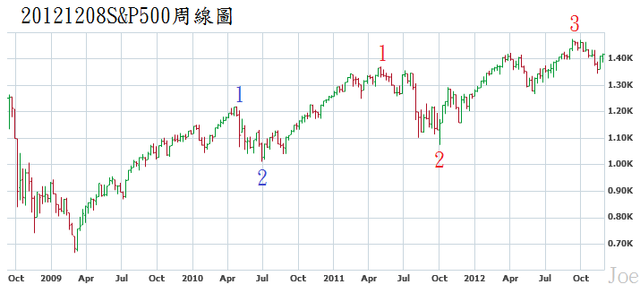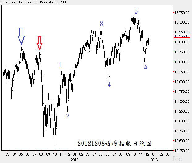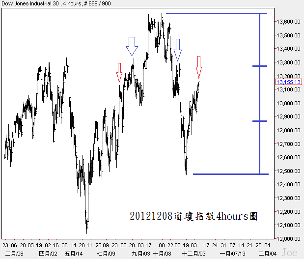 11月初這篇http://www.wretch.cc/blog/joejoejoe/16353889分析中,當時情況一躍昇為發生機率較高的線圖,如今道瓊指數再度出現約700點的漲幅,所以只好檢查周線圖和日線圖的型態有無改變![]() 圖中明顯可以看到,11月份的跌勢實在頗深(暫畫為藍色a浪),甚至來到接近11月初那篇分析文章中的道瓊指數線圖,情況一中的紅色2浪,所以這周分析仍然沒有劃出更高第五浪的線圖型態,目前仍然不適合操作任何股市 ![]() 把週期縮小來看,藍色箭頭的位置是約略對稱的,左邊的紅色箭頭約在13130左右,但周五收盤價格明顯是超過13130這個價位的,型態變成了對美股較有利,美股前伊一波跌勢從11月中以來,反彈逐漸接近2/3的位置,反彈如果能超過2/3的價差,那麼波浪的分析原則就會變成超過前高,那麼14000在這個月出現的機率就會大幅提升了,但屆時仍然不適合做多,因為利潤已經太薄,反彈超過2/3以前,也沒辦法進場做多,例如上面日線圖,2011年5~8月,藍色和紅色箭頭的位置,反彈超過2/3了,但後頭緊接著卻是1000點以上的跌勢,不管如何,眼下操作美股不管做多或做空,把握度都不如財政懸崖後,等跌勢出現在做多美股來的理想,近期都只能等待 |
