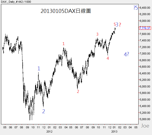 | DAX | ![]() 按照德國目前的經濟狀況來看,目前的EUR匯率相對於德國經濟實在是便宜了,歐盟的貨幣政策和對債務國的緊縮政策,反而讓德國不斷的吸收盟國的經濟成長力,回頭再來看,2011年8~10月的德股,當時在恐慌之下,確實跌過頭了,2013年只要美國解決第一季的債務問題,德股後勢仍然會有上漲空間,不過短線上還是等價格便宜些再考慮持有 |