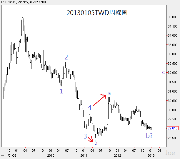 | TWD | ![]() 這是USD/TWD發生機率最高的線圖,這也是我為何判斷USD/TWD可以走升的主因之一,另一個可能路線是a浪其實是4浪,5浪其實是3浪,這樣一來USD/TWD未來勢必會出現28.0以下的價位,甚至更低,這也是央行一直守在29.0以上的原因,因為29.0一旦攻破,線圖技術上,勢如破竹攻破28.5就只是時間的問題了,這對台灣的企業絕非是好事 ![]() 周線收盤前可以觀察到,新加坡幣,泰銖,披索都有稍微回檔的跡象,當然目前還看不出來亞幣是否改變了近半年多來的升值走勢,至少韓圜仍然強勢,只要這些貨幣的匯率沒有兌美元大幅貶值,亞股暫時仍然會是利多的情勢 |