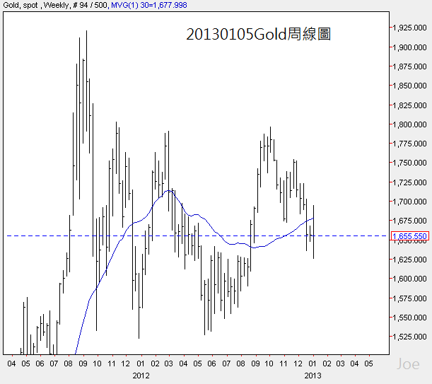 | Gold | ![]() Gold周線收盤價格仍然低於周線30均線,價格維持在均線以下就無法進場操作,沒辦法進場 |