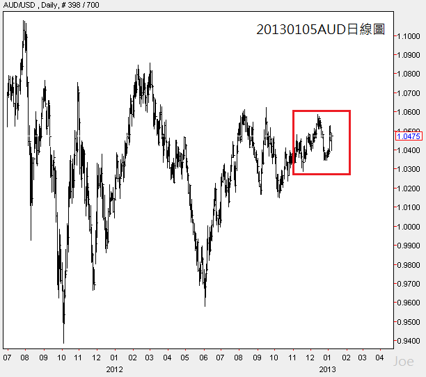 US$0.03內的區間震盪,盤整對於多空兩方的AUD投資人都不利,短線上只能空手維持觀望,無法