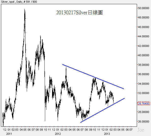 白銀的狀況非常不理想,如果摜破藍色斜線,那麼價格恐怕會再度下探到26.X