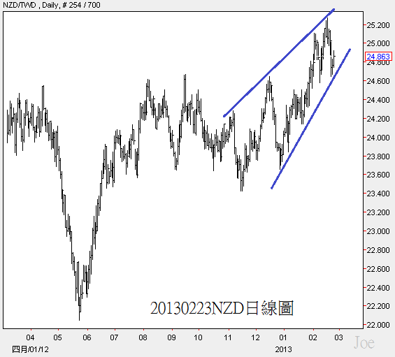 這個型態相對來說是較有利於上漲的走法,如果不是NZD本身上漲,那麼就是TWD自己走跌,NZD/USD再上漲的話並不利於紐西蘭的經濟發展,所以TWD走跌的機率較高,今年來說,持有USD還是比較安心