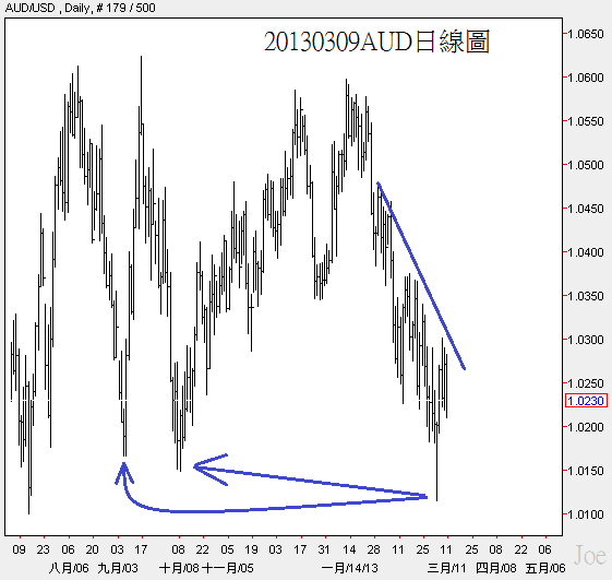 | AUD | ![]() AUD/USD跌破藍色箭頭的價位,AUD的後勢發展會較為不利,美股出現修正完畢以前,暫時不適合持有太多AUD |