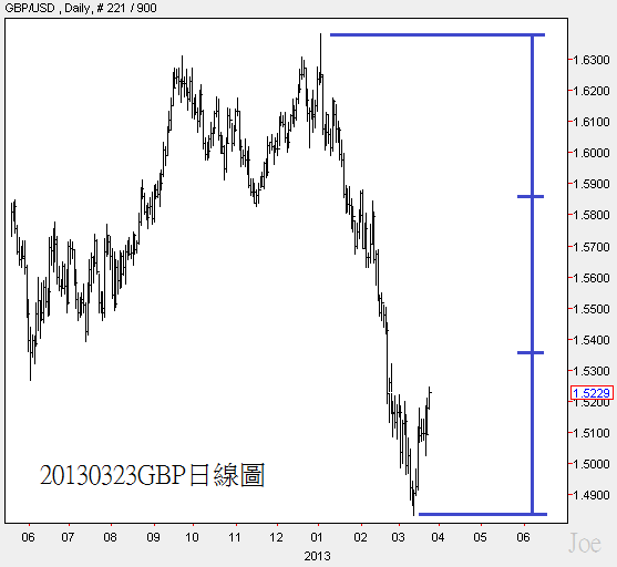 GBP/USD下跌1550點後,出現短線盤整,理論上反彈高度約1/3,1.535是短線可以預期的價位