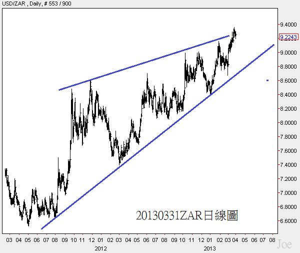 AUD,NZD,CAD的匯率在美國QE規模縮小以前,還不會太弱,AUD大約就在藍色平行線內大震盪