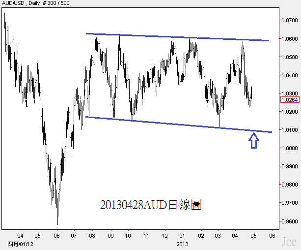 | AUD | ![]() 可以賭賭看在AUD/USD的下方藍色線等待作多,這個區間震盪現象在美國縮小QE以前還不至於有太大的改變,只是要很有耐心等待中間的盤整,還是有利潤可圖 |