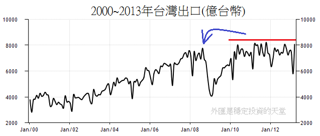 台灣、日本、南韓、中國都是製造業出口為發展主軸的國家,2008年爆發美國次級房貸以後,出口成長出現重新洗牌。
