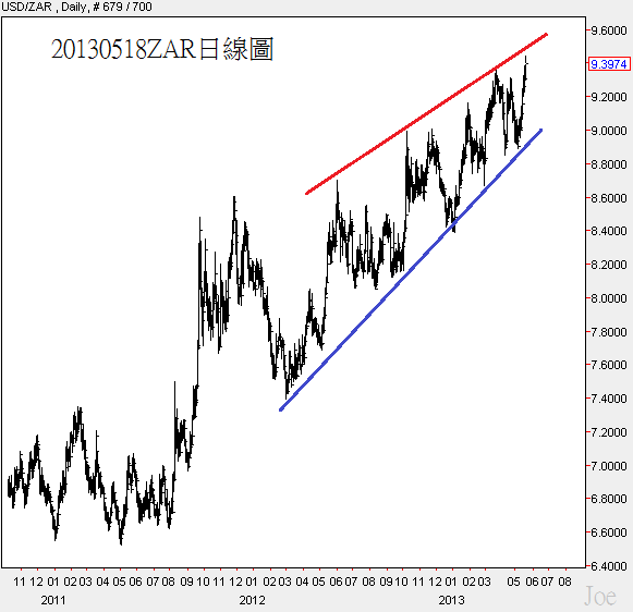 ZAR長期維持在藍紅線之間盤整,不管價位多低,暫時難以看到投資價值