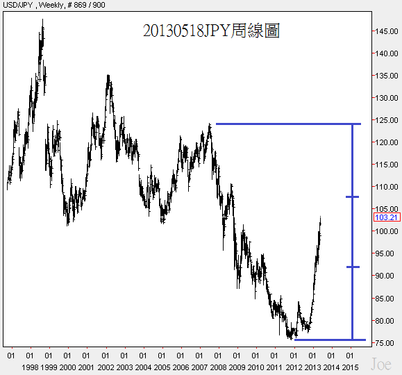 JPY在100的價位撐了幾天後,短線上直接突破100到103的價位,眼下對JPY分析的效率非常低,拉到周線結構上去看估算反彈2/3,等107~108的價位吧,需要JPY的讀者,需要用到的前幾天在買即可