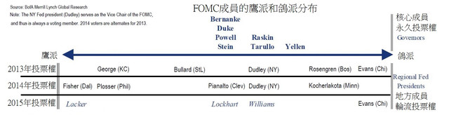 媒體記者要找結束量化寬鬆政策的訊息,主要都來自於這四位,很可惜的他們的投票權被分散了,2013年George擁有投票權,她會反對寬鬆貨幣直到聯準會開始放緩量化寬鬆。