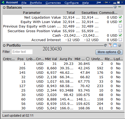 這是Joe給約60人的少數讀者所做的示範帳戶,Interactive Broker的真實帳戶,大約持續追蹤和分享了兩年的實際交易經驗,也讓這些讀者了解Joe的實際操作流程和部位控制的情況