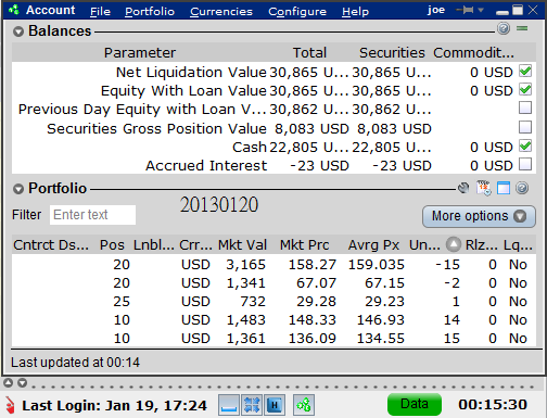 這是Joe給約60人的少數讀者所做的示範帳戶,Interactive Broker的真實帳戶,大約持續追蹤和分享了兩年的實際交易經驗,也讓這些讀者了解Joe的實際操作流程和部位控制的情況