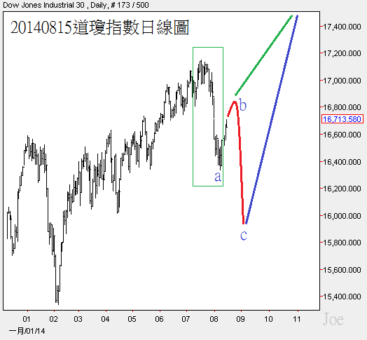 請問Joe大, 道瓊目前看起來好像要朝綠線發展了是嗎?