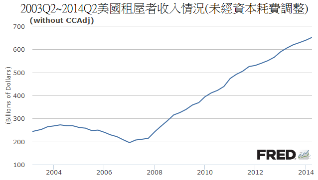 而且美國總人口是持續在增加的,2014年大約有3.17億人口,和2006年房地產市場巔峰相比,人口增加了1%以上,基本的民生住宿肯定是必須的,對於買不起房地產的美國民眾來說,租屋會是更好的選擇,稅務負擔也比較輕,只要確保承租者能順利付出租金,租屋市場在美國景氣繁榮期間,都會呈現穩定成長的趨勢。