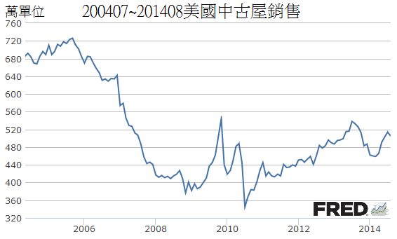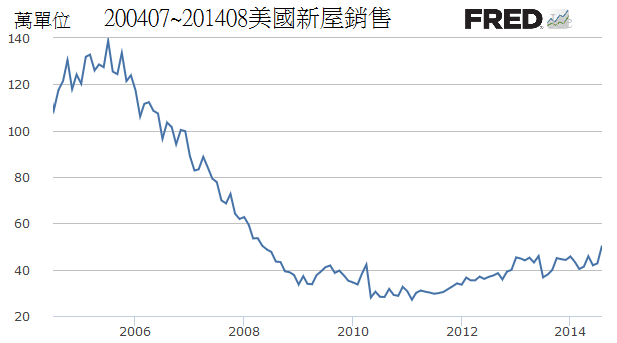 從美國中古屋或新屋的銷售情況來看,雖然已經是最近六年來相對理想的情況,但美國民眾購屋的情況依然不夠熱絡,當然情況最遭的2011年已經過去,未來會慢慢復甦,只是速度還是相當緩慢,主要原因是美國大多數民眾的收入還不足以負擔購屋,需要更多時間,才有足夠儲蓄,另外,2015年美國民間企業會逐漸擴大增加薪資,只要有穩定加薪,購屋市場就會越來越熱絡,從新屋市場的銷售數量和歷史軌跡來看,目前美國房地產才剛開始進行新的繁榮之路,2014年8月的新屋銷售不過50萬棟,並不是非常火熱的數據,房地產復甦還在起步階段。
