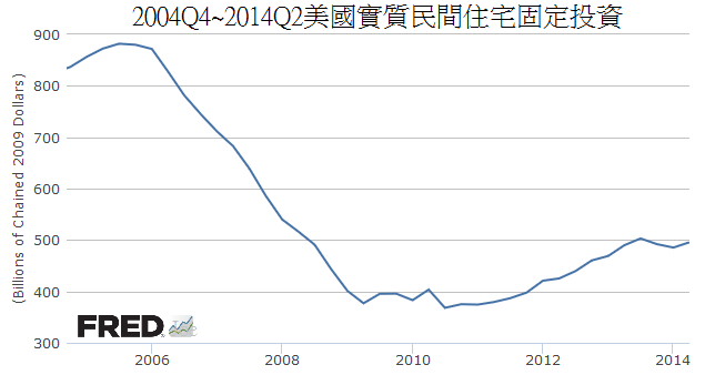 在資本主義和商業利潤橫行的美國,當地建商對市場情緒非常敏感,2014年第一季,天氣嚴寒,房地產買賣市場冷淡,美國的住宅投資再度下降,因為美國房地產已經低迷數年,只要一有風吹草動,建商們立刻會緊縮來對待,規避風險,但只要景氣一好轉,又會回頭增加投資,2014年第二季以後,民間住宅的固定投資會繼續回到成長的趨勢。