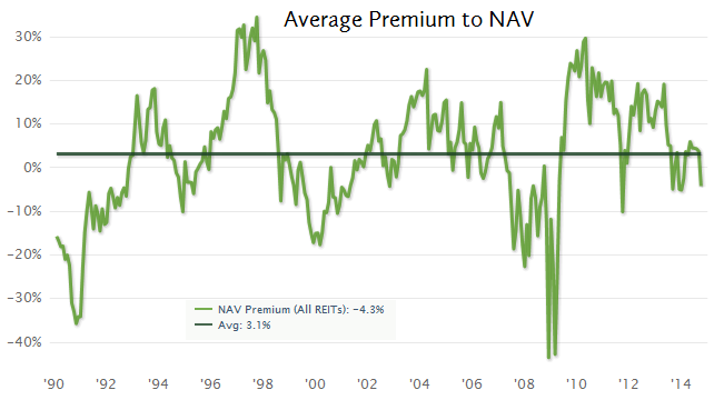 現階段的情況來看,美國經濟處於要結束復甦時期,進入擴張時期的轉折點,這段時期仍然是租屋市場的投資時期,從租屋市場的比較價位NAV水平來看,目前NAV大約折價-4.3%,1990年以來的平均水平是溢價3.1%,像2009年最低是折價超過40%,白話來說,現在進場租屋市場,算是打折了4.3%,但是以過去的歷史水平來看,平均溢價3.1%,如果投資人看好未來房價和租金都會漲更高,那麼投資VNQ長遠來看會是理想選擇,因為房價漲了會反映在股票淨值,租金收益會以股利的方式呈現,算是景氣擴張的投資產投資目標之一。