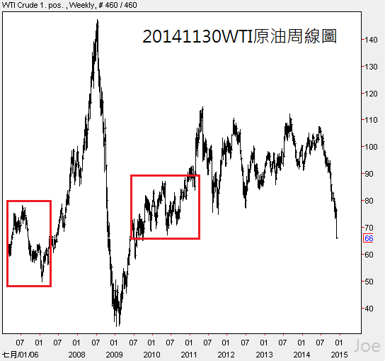 美國的原油庫存雖然高於2010~2012年的紀錄,但並非常嚴重,甚至還低於2013年,油價短線暴跌並不是供需平衡引起的,原油價格最終仍會回到供需平行的自然價位,快一點的話是明年初,慢一點可能是美元升息之後